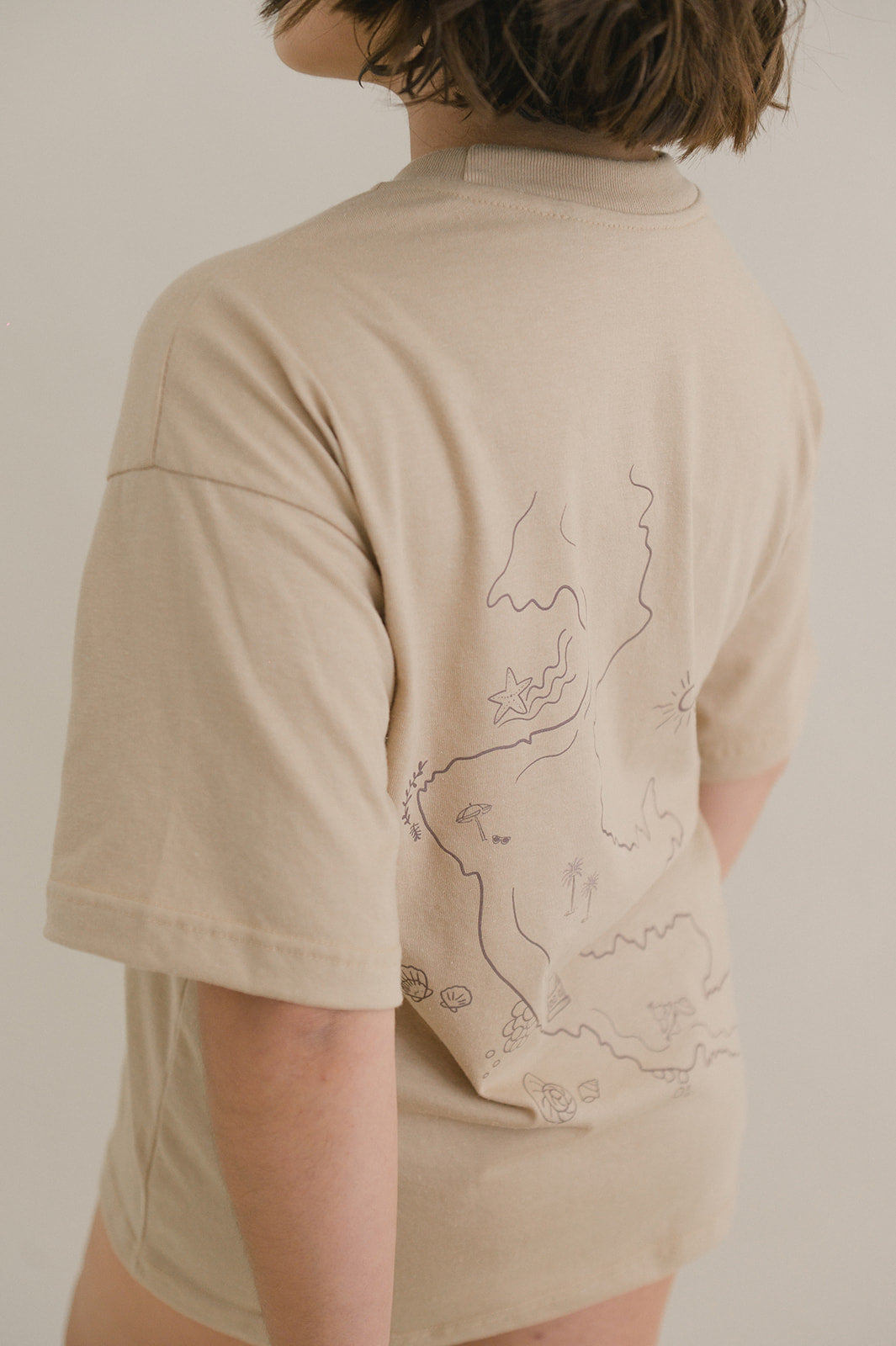 La Playera Costa Neutra, confeccionada en 100% algodón, es la prenda esencial para este verano. Inspirada en las playas de Jalisco, es por eso que en la parte de atrás tiene la silueta de las playas jaliscienses, ofrece una textura suave y transpirable que garantiza comodidad durante todo el día. Su diseño neutro y versátil la convierte en una pieza clave para quienes buscan estilo y funcionalidad en climas cálidos. Ideal para disfrutar del verano con calidad y frescura.